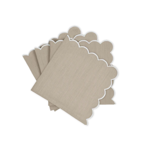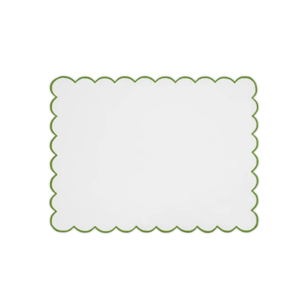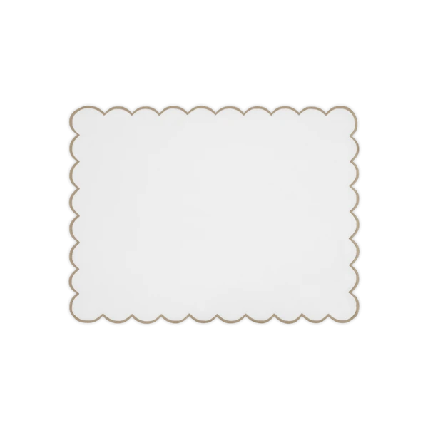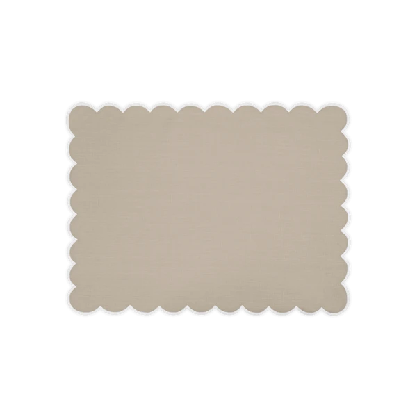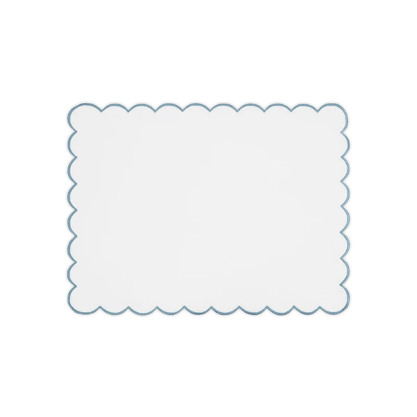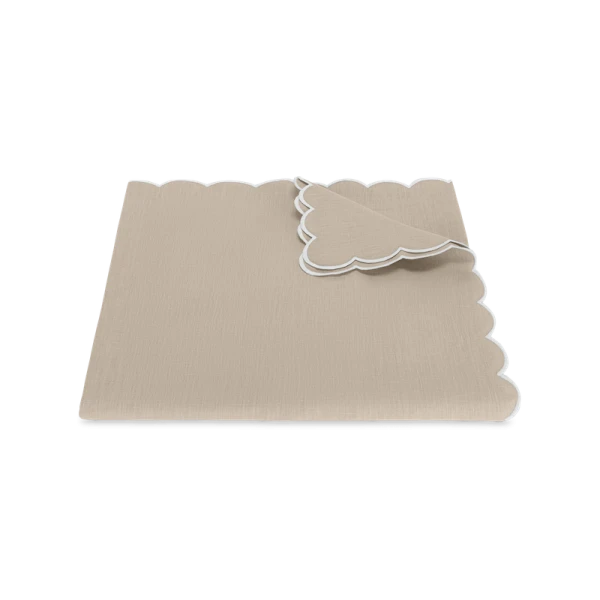 Matouk's Dakota Table Collection is crafted from Valentina linen and complemented by a scallop embroidered trim in versatile hues. This elegant assortment includes napkins, placemats, runners and tablecloths that fit any occasion and provide a delicate base on which to layer additional prints. 100% printed linen. Made in the USA of fabric from Portugal.