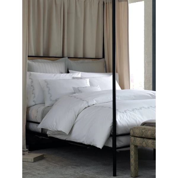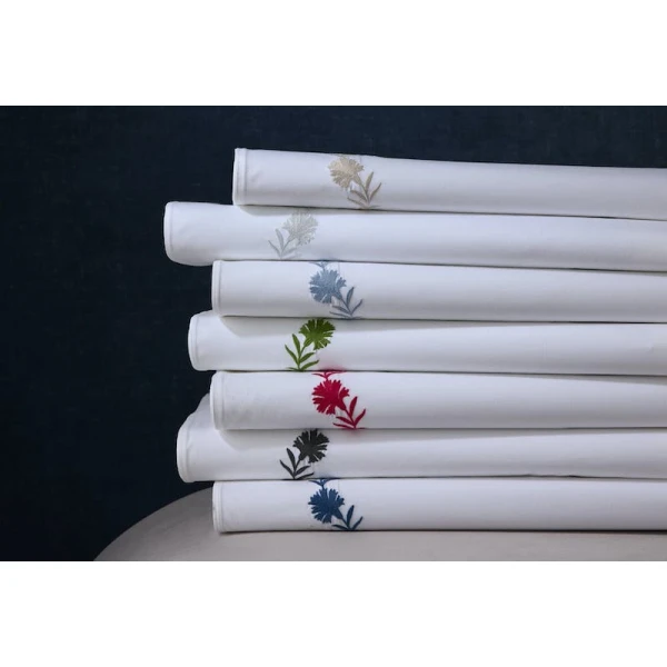 Matouk's Daphne is a beautiful classic or vibrant embroidery of sweet vines on white Ceylon percale sheeting depending on the color you choose.  All finished with a knife edge and delicate cording. 100%cotton