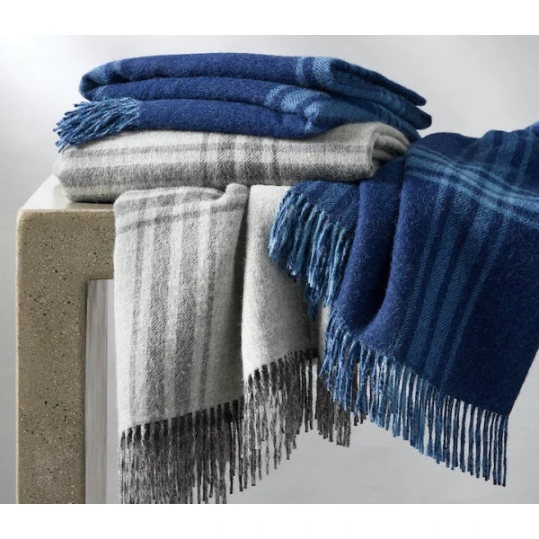 Matouk's Diego is crafted in Peru from the finest alpaca wool.  The Diego throw will add an exquisite layer of comfort to the bed or sofa.  A generous size and weight, it features a versatile plaid topside with a solid color reverse and is completed with fringed edges. 100% baby alpaca. Made in Peru.