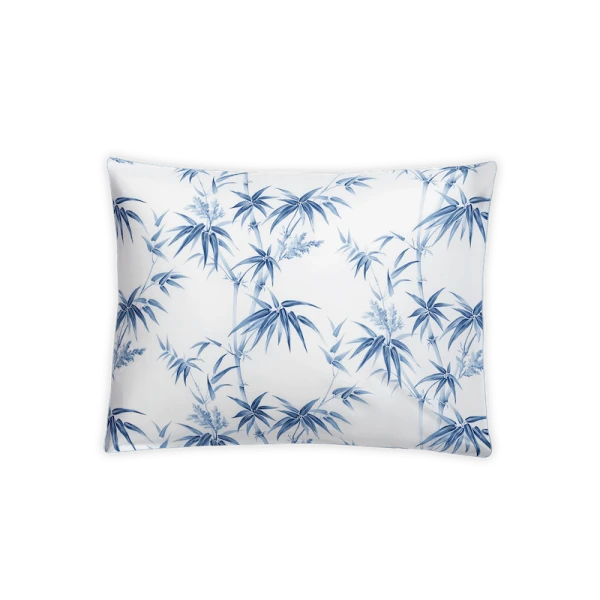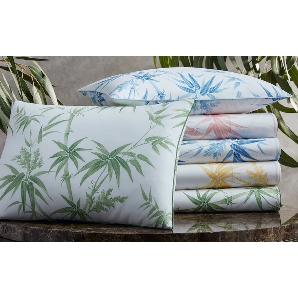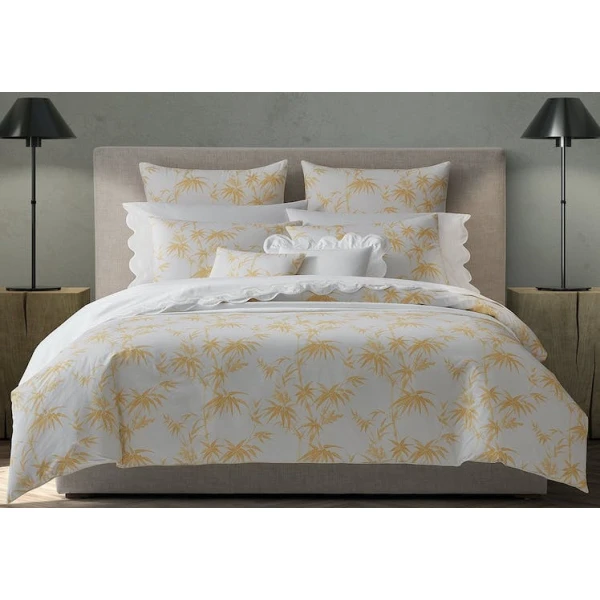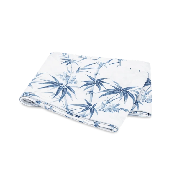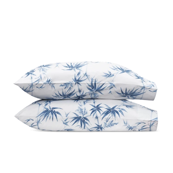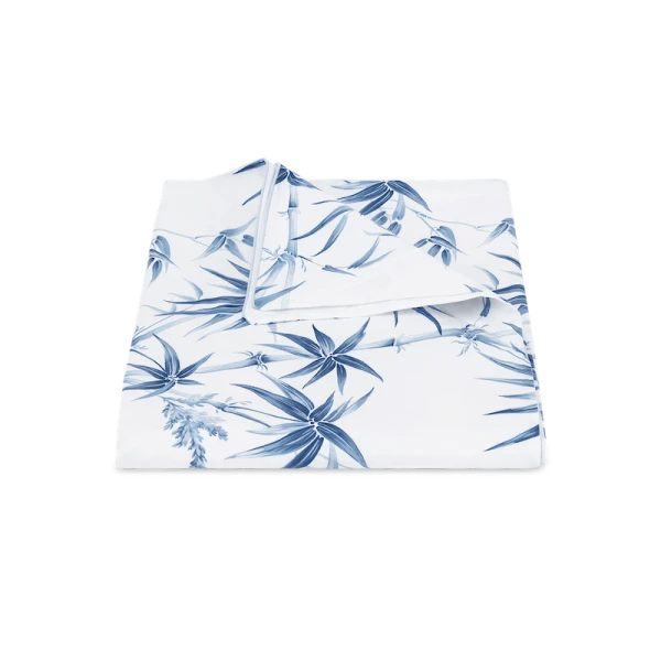 Matouk's Dominique is a reimagining design of Schumacher's Arita floral.  Dominique features tropical bamboos and airy botanicals on Luca percale.  500 thread count Egyptian cotton percale woven and printed in Italy.  Duvet Covers have Luca White 500TC sheeting on the reverse. Duvet cover and shams have corded edges.