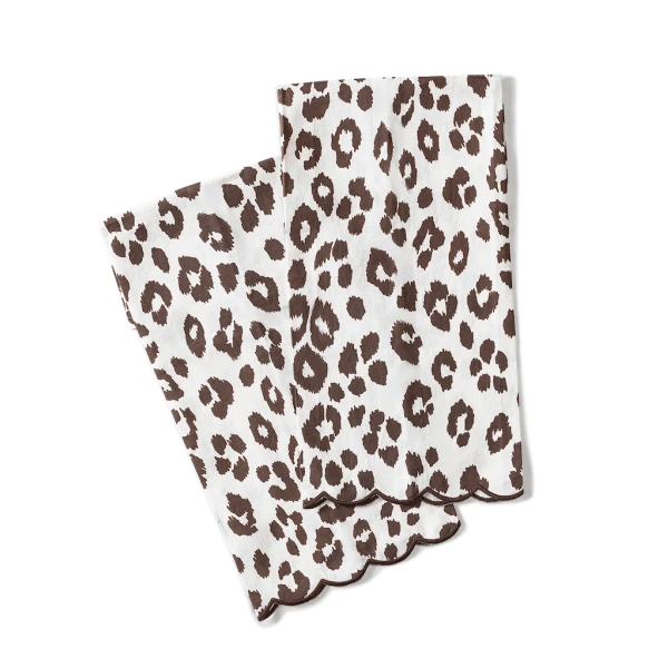 Matouk's Iconic Leopard Guest towels are from the design that Schumacher introduced in the 1970's. Schumacher’s Iconic Leopard is alluring and endlessly chic. It is available in three versatile hues. Set of two. 100% linen. Made in the USA of fabric from Portugal.