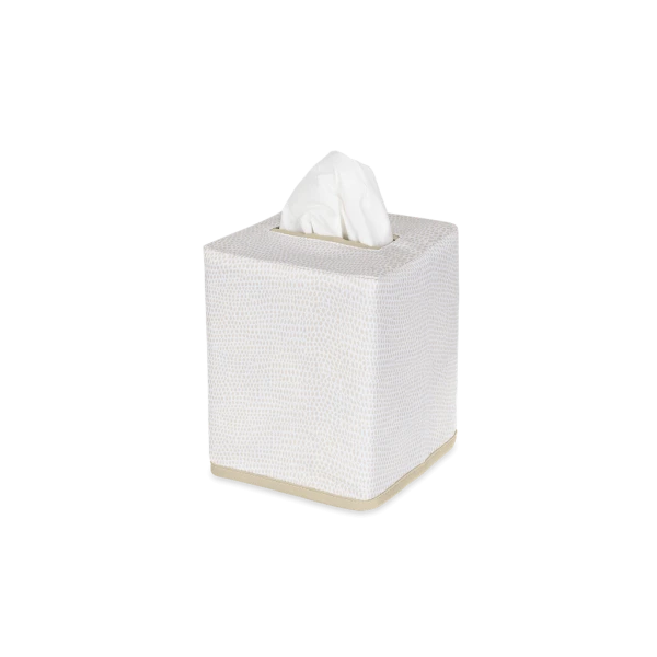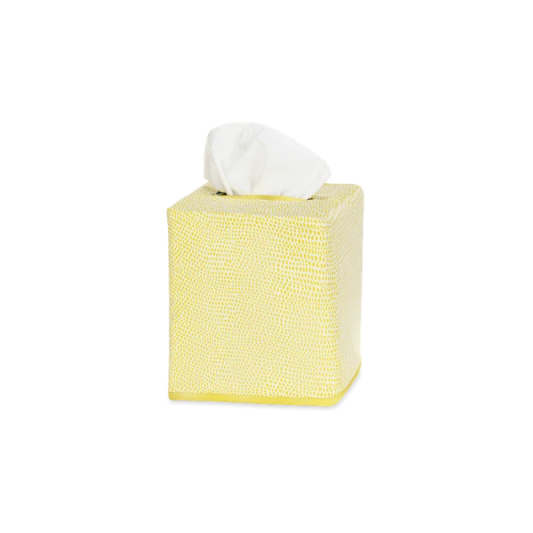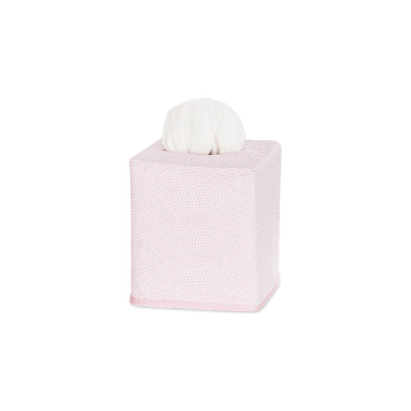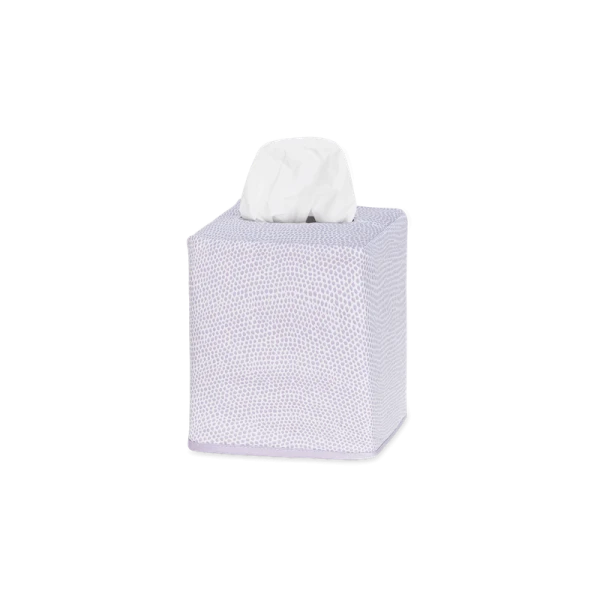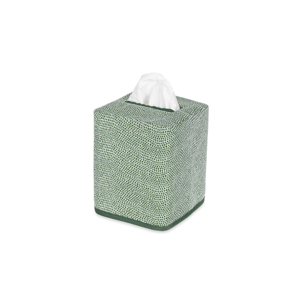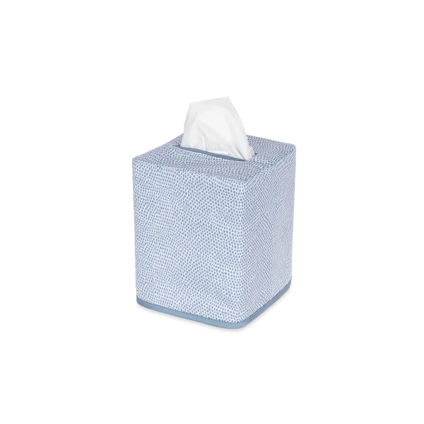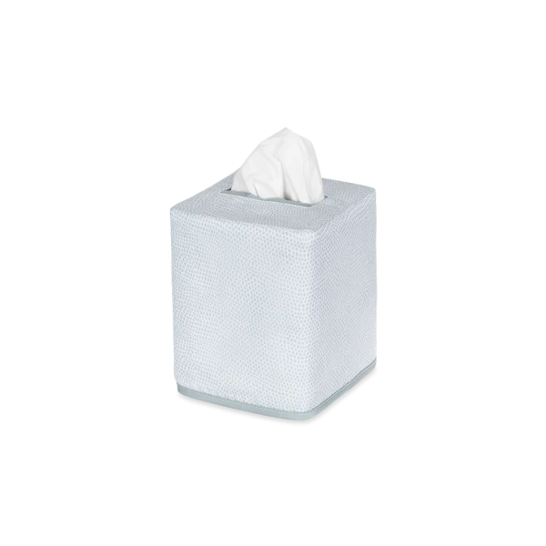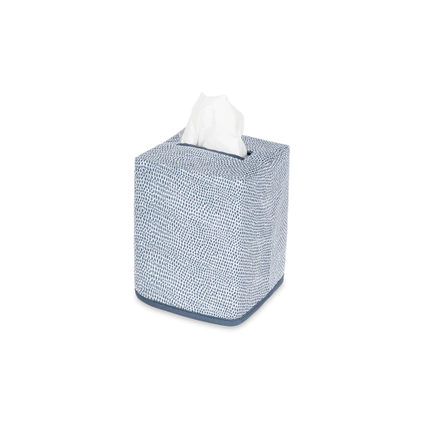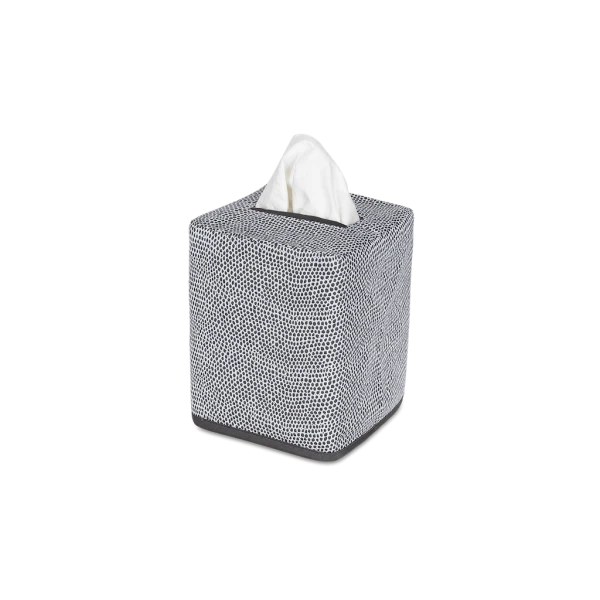 Matouk's Jasper Tissue Box Cover has a shagreen-inpired pebble print in several contemporary and refreshing color ways. Jasper is made from Matouk's silk-smooth sateen. The perfect finishing touch for bedrooms and bathrooms. 100% Egyptian cotton outer shell with 100% linen lining. Made in the Philippines of fabric from Italy.