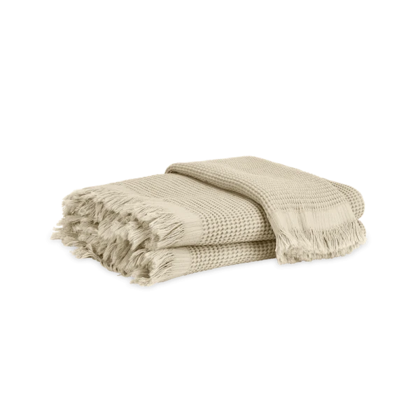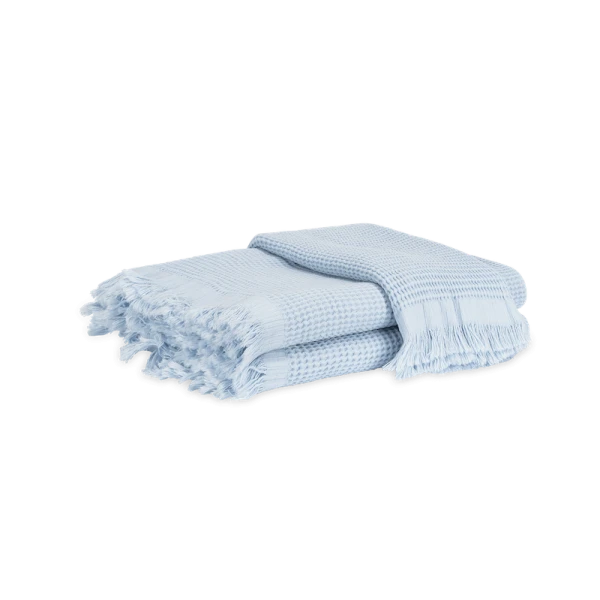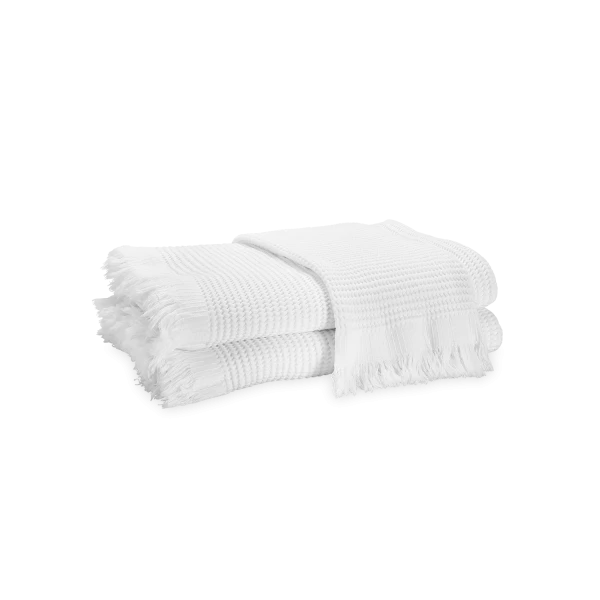 Matouk's Kiran is a unique waffle towel that will beguile you with its luxuriant suppleness and thirsty texture. Woven and finished in Turkey, it owes its softness to 25% bamboo blended with cotton. A delicate barred border with fringe is a special finishing touch.
