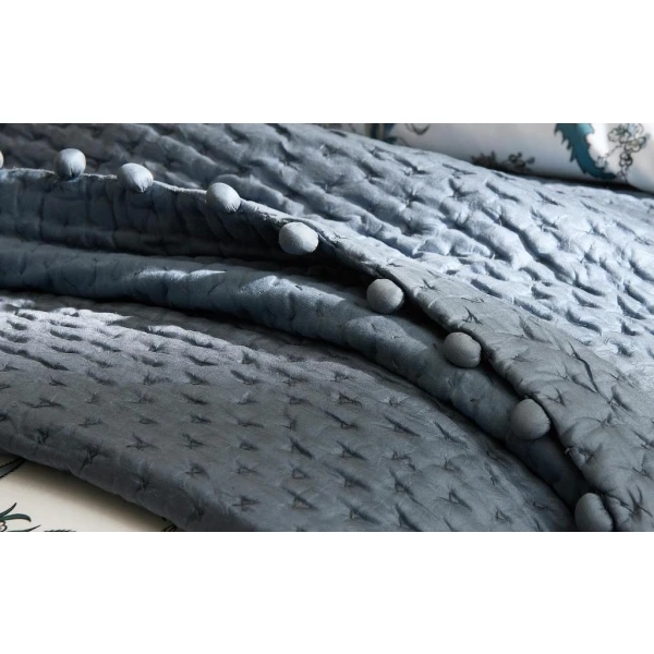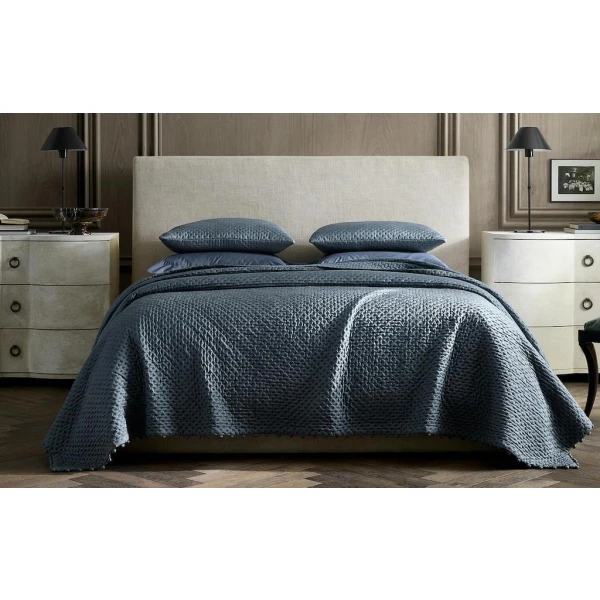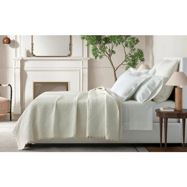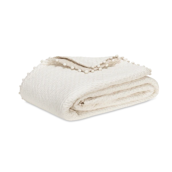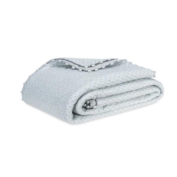 Matouk Margaret is a breathable and elegant quilt with coordinating shams. Margaret is precious in feel and robust in craft. Comprised of 100% hand-stitched silk quilting across the front and cotton voile on the back. Small round pom poms along the edge are a delightful additional accent. Quilts are filled with 80% cotton and 20% silk filling. Made in India.