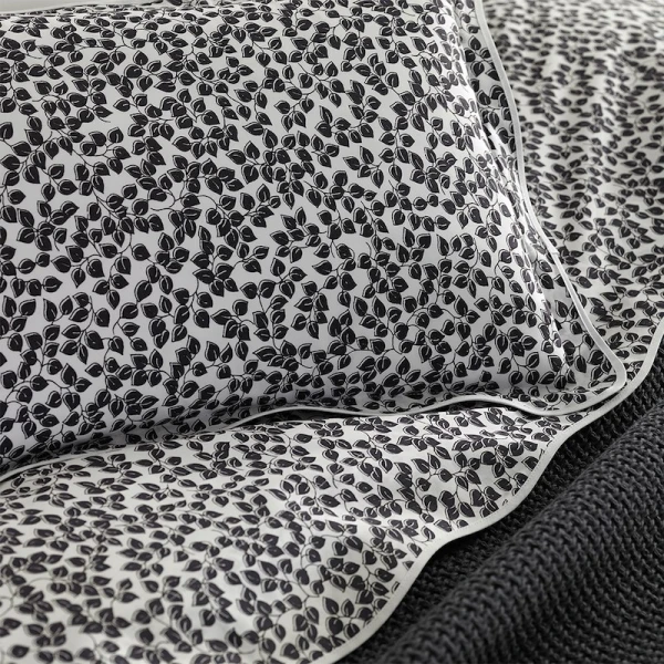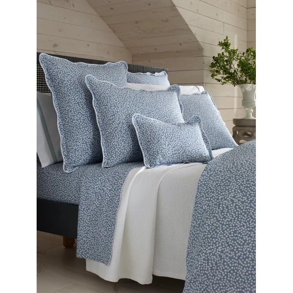 This sophisticated 100% cotton print is a true Matouk original, inspired by a textile found deep in their treasured archives. Margot's small, simply drawn leaves fit snugly together on Luca percale, for a pattern that nearly reads as a solid color. The edges of each piece are finished with a subtle white scallop.