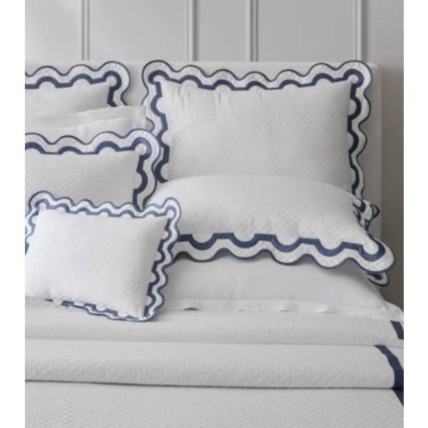 Matouk's Mirasol is a personal favorite. Mirasol embellishment infuses this classic diamond matelassé with a sunny, upbeat style. Originally inspired by Palm Beach shop awnings, the appliqué design expands the wider Mirasol sheeting range with a pliably soft coverlet quality crafted in pure cotton.