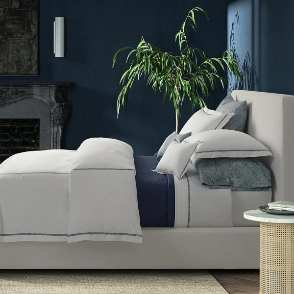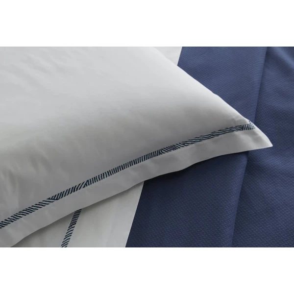 Matouk's Burnett Border Collection is light, fresh, and colorful just like the Burnett Border Collection. Ultra smooth Ceylon percale that has an inlaid applique border of brushstrokes in a subtle two tone stripe affect and run in diagonals. An original Schumacher design -- it coordinates with other Matouk patterns as well as the Schumacher bedding patterns. Schumacher is well know for traditional American classics in fabrics and wall papers. Use Ceylon as fitted.