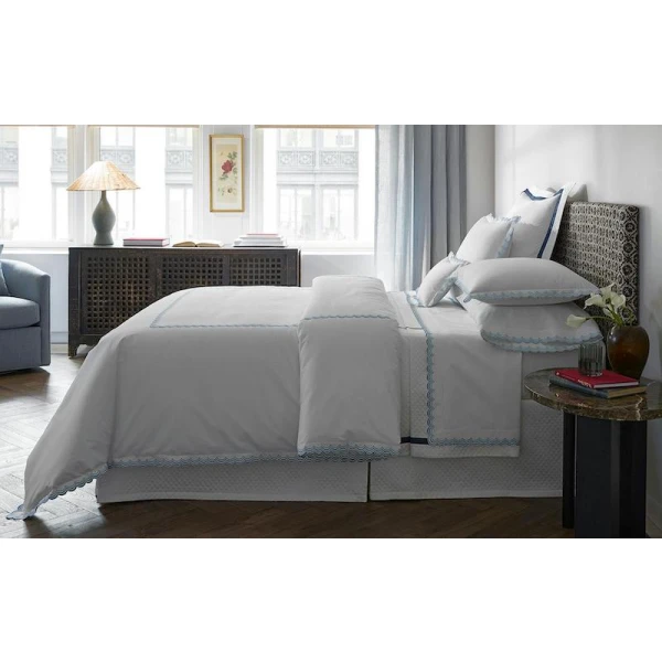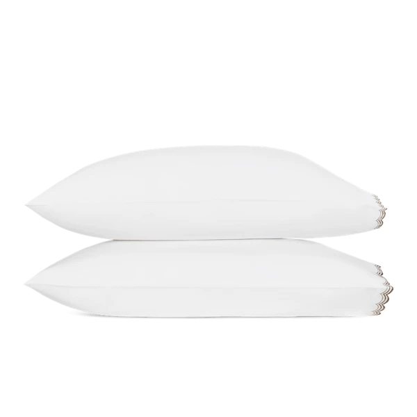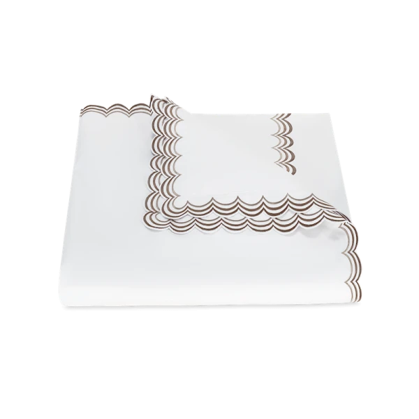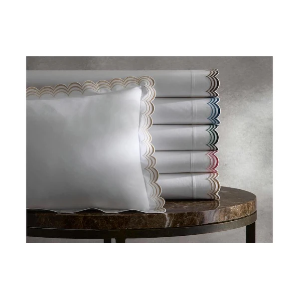 Matouk Stella is a beautifully refined collection. Stella is a stylish embroidered collection featuring three lines in tonal hues curved across the flange of crisp Milano percale sheeting. It has an Art-Deco feel that’s artistically inspired, and its range of color combinations is designed to delight the senses. Milano 600 thread count Egyptian cotton percale. Made in the Philippines of fabric from Italy.