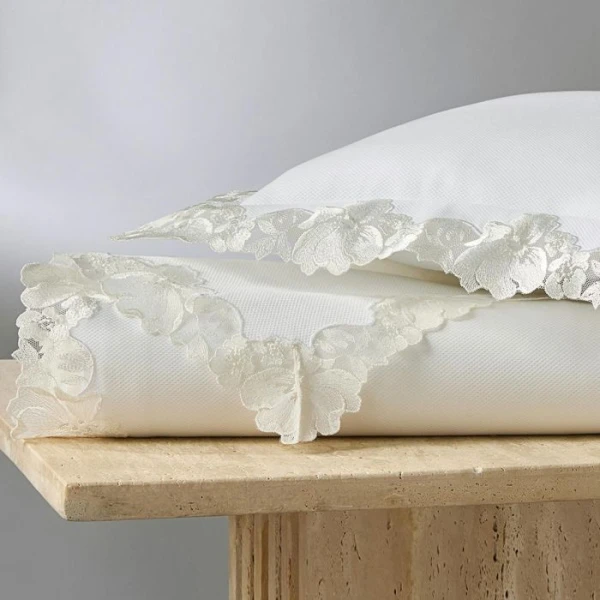 Matouk Virginia Pique Coverlet is as extraordinary as your most treasured heirlooms. Crafted on Matouk's Camilla Pique with intricate Swiss lace, these pieces add a touch of comfort to the most luxurious bed styles. 100% cotton. Made in the Philippines of fabric from India.
