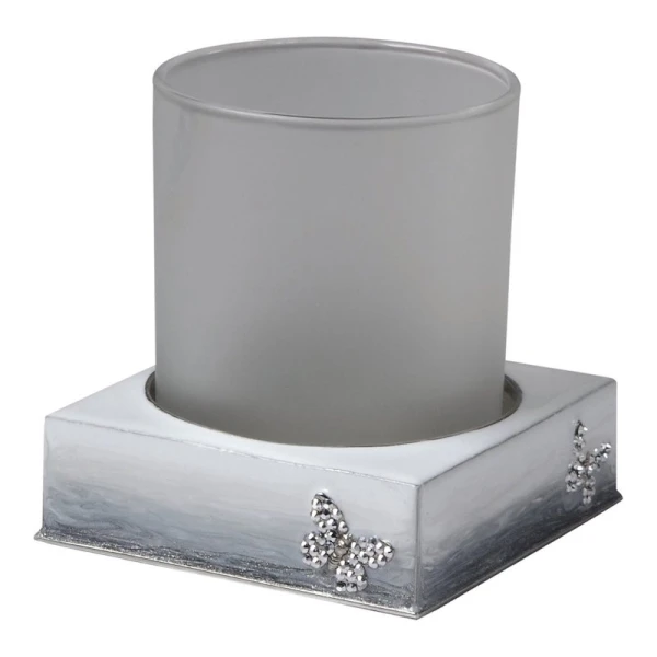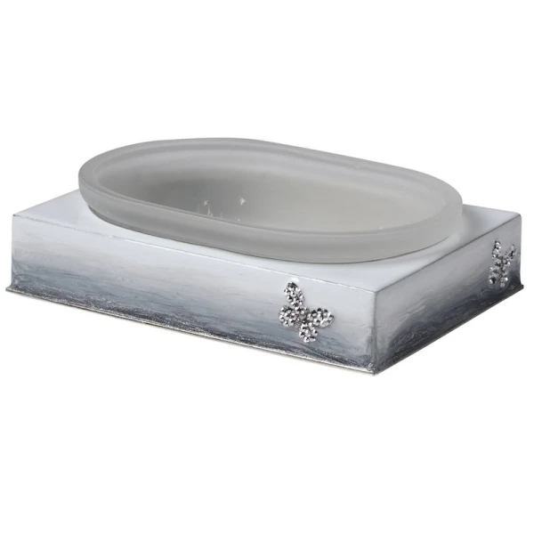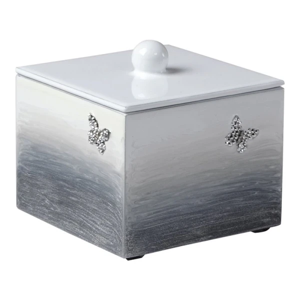 Mike + Ally's Breeze Luxury Bath Accessories has a soothing ombre effect.  It is then accented with exquisitely crafted pave butterflies for a refreshing bathroom accent. The gray gradation consists of