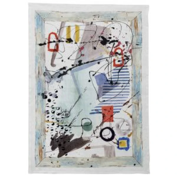 Moma -- is an ode to a more contemporary tea towel -- which takes its design from modern art. Available with a maroon border (shown) or with a celeste blue border. Also available in a table runner, tablecloths, mezzeri and rugs. New for 2022.