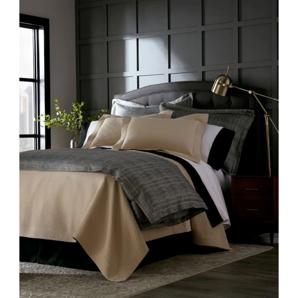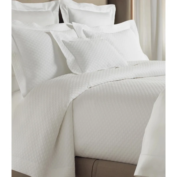 This tailored, classic matelasse features a diamond design with eight rows of stitching on the flange. 100% Egyptian cotton. Made in Portugal.