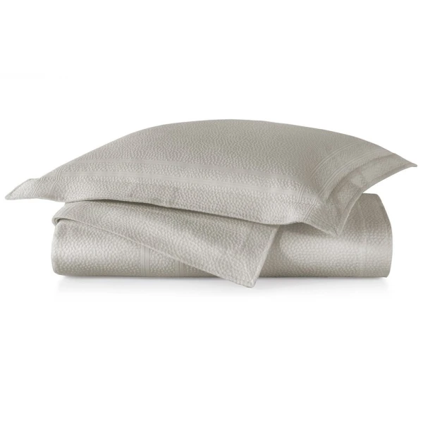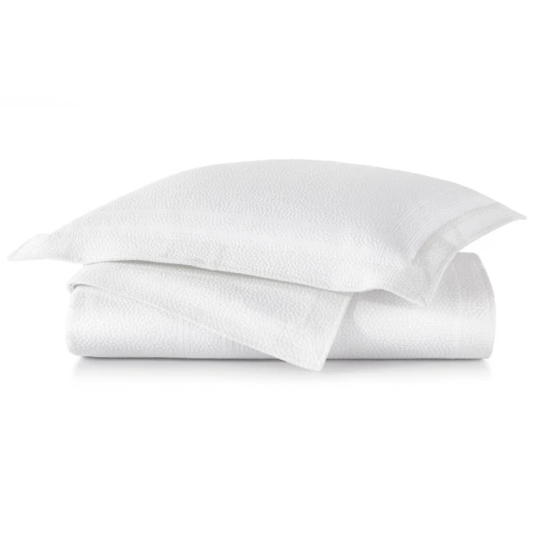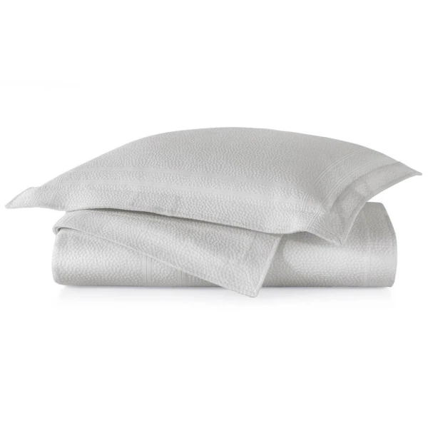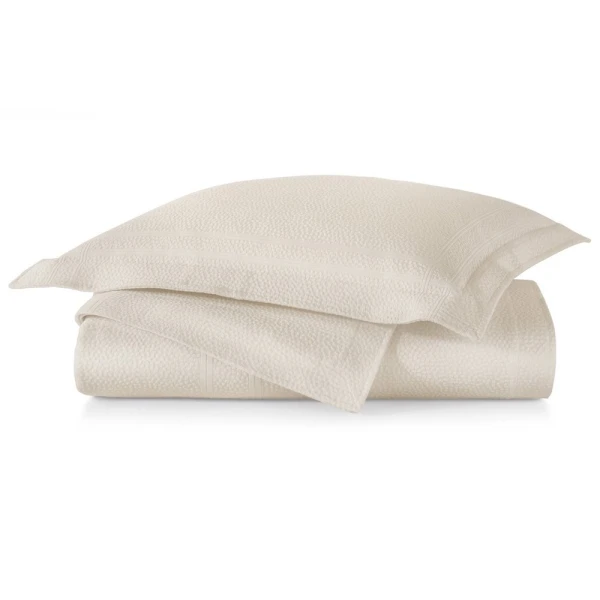 Montauk -- think lifestyle! This wonderful new matelasse is is a classic engineered border pattern with subtle dots throughout.  Tailored finish all around.  In Pearl (Ivory) or white.  New for Fall 2012 -- "Montauk". Can go contemporary.One of our best selling matelasse patterns.