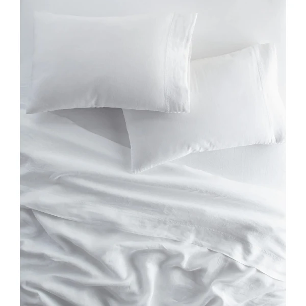 Peacock Alley's European Washed Linen collection will elevate your bedroom aesthetic, a chic and environmentally conscious choice for the discerning connoisseur of comfort. Meticulously crafted from the finest European flax. Linen offers a perfect balance of breathability and softness, ensuring a comfortable night's sleep throughout the seasons. Embrace the durability of linen fibers, coupled with natural moisture-wicking and cooling properties. 100% Linen -- made in Portugal.