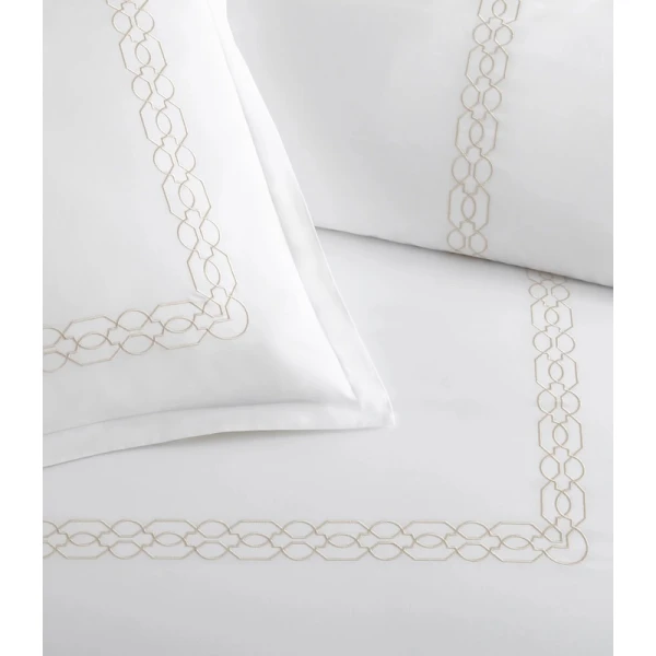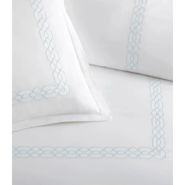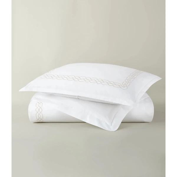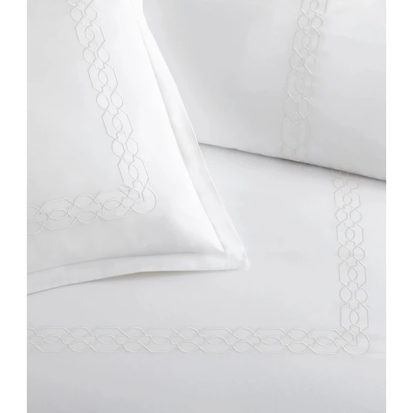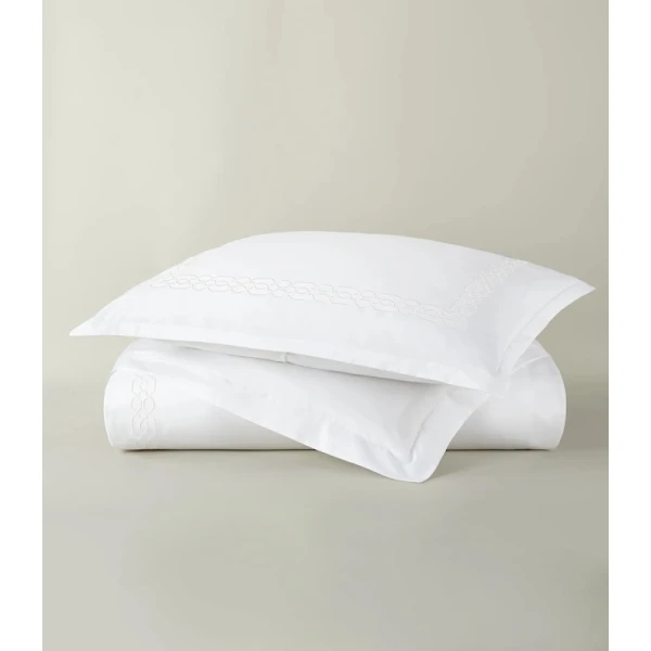Peacock Alley's Filigree Embroidered Duvet Set captures the understated luxury of five-star hotel design through its sophisticated embroidered Filigree border. The geometric tracery pattern introduces refined visual depth while remaining beautifully compatible with diverse bedding and décor combinations. Made from 100% cotton percale, this set delivers the softness and breathability discerning sleepers expect, paired with exceptional durability. Manufactured in Portugal with meticulous craftsmanship, it represents a thoughtful investment in bedroom elegance that transcends seasonal trends.