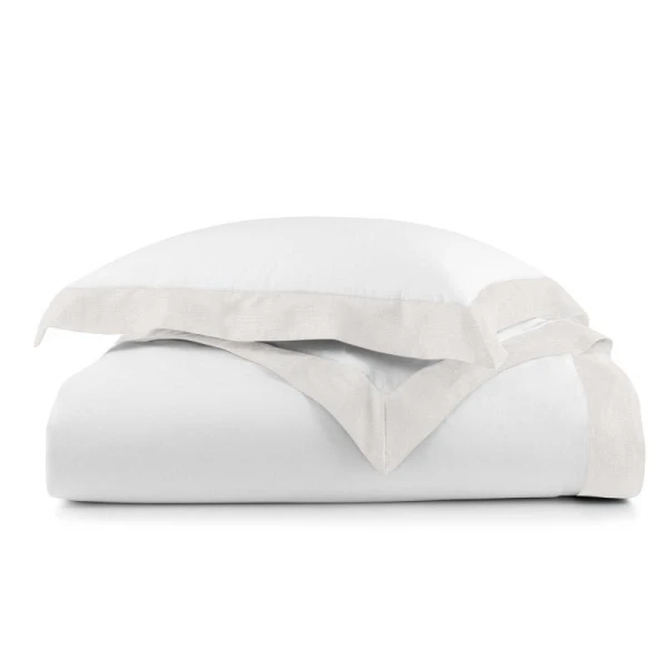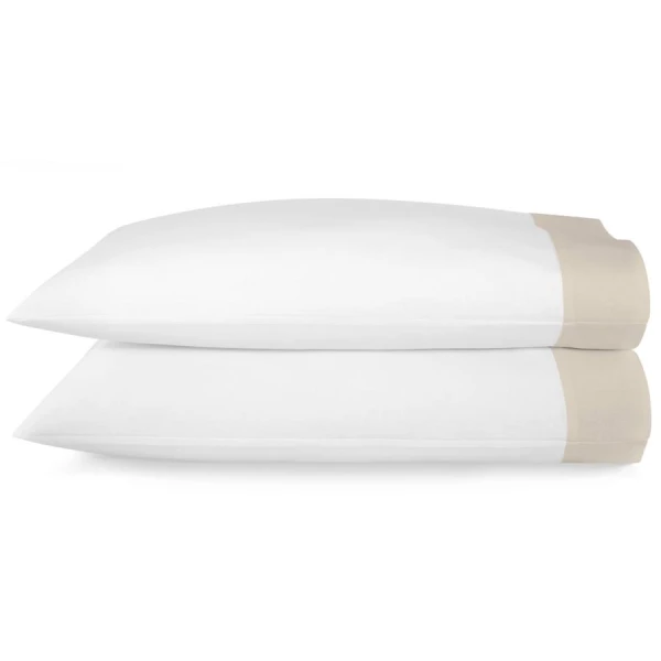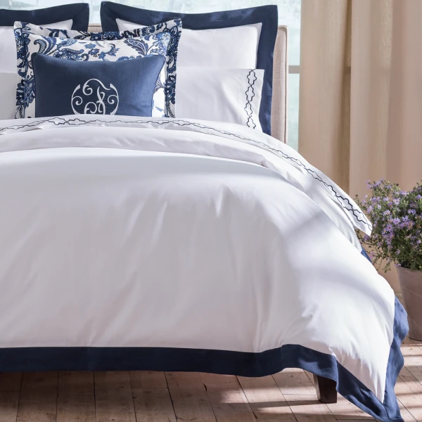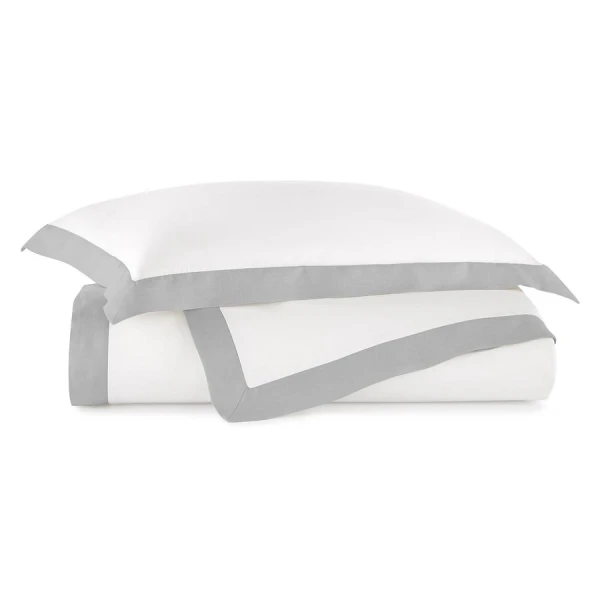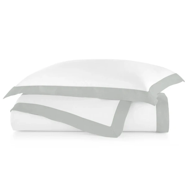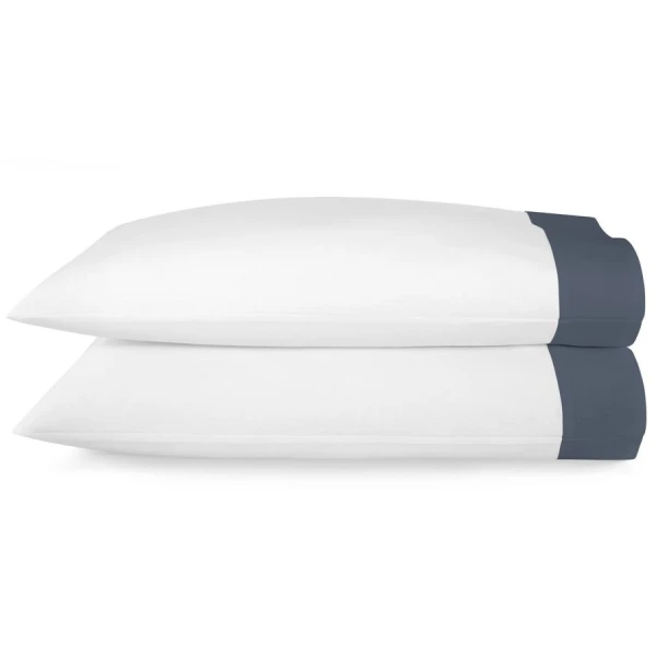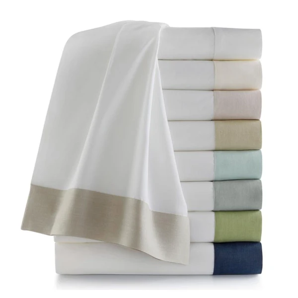 Peacock Alley's Mandalay Cuff is made of pure, white cotton sheeting and accented with linen in your choice of colors. It is as versatile as it is beautiful. If you're looking to add a touch of color and texture to your bedding, you'll surely appreciate this collection. Available in duvet covers, shams, flat sheets, pillow cases and as a sheet set with a coordinating fitted sheet. Pillow cases and the flat sheets feature a 4" linen cuff detail. Duvet cover and shams feature a 2" linen cuff detail with zipper closer. 100% cotton base sheet made in Portugal and 100% linen cuff made in Belarus. 200 Thread count Boutique percale sheeting.
