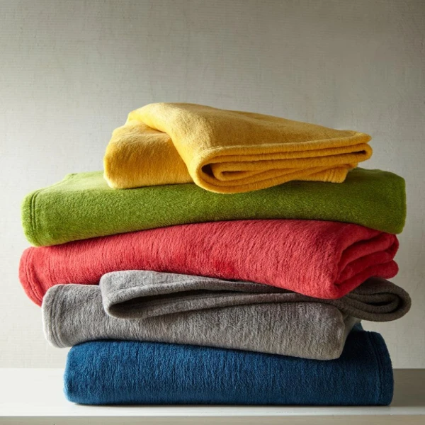 Peacock Alley's Slumber Blanket is available in three size and in a throw. Slumber is a cozy brushed blanket so soft, it's worth fighting over. We love how bright it is and can be coordinated with Fern bedding. We are sure you will want both. 60% Cotton / 40% Acrylic. Constructed with a self hem and double simple stitch. Made in Portugal.