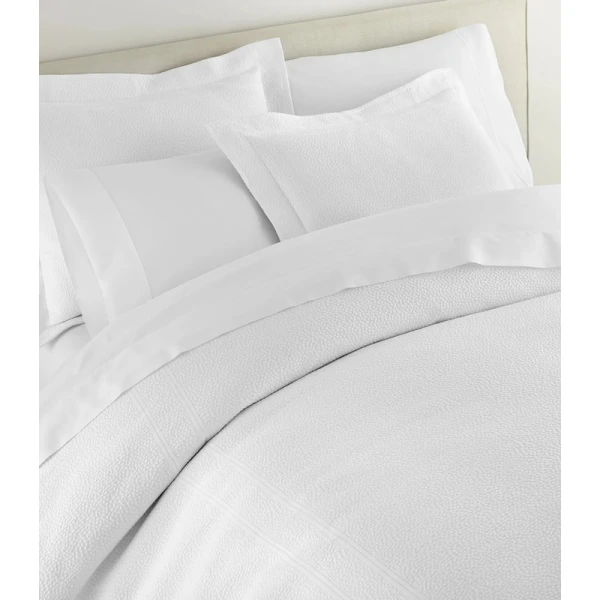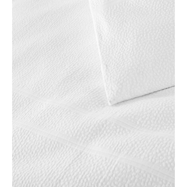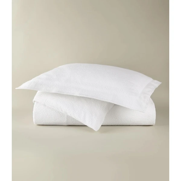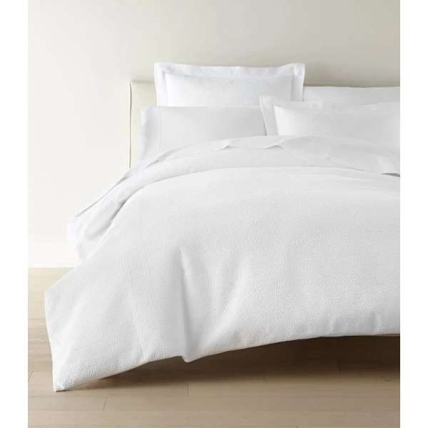 Peacock Alley's Montauk Matelasse Duvet Cover is known for its pebbled texture and sophisticated stripe. The Montauk coverlet is now available in a duvet cover. This duvet has a tantalizing texture on the front and reverses to a silky, smooth cotton percale for lightweight breathability. Layer your way to a beautiful bed with Montauk. Duvet cover is constructed with a knife edge design and hidden zipper at the bottom. Duvet ties sewn into each corner. Made from 100% cotton. Made in Portugal.