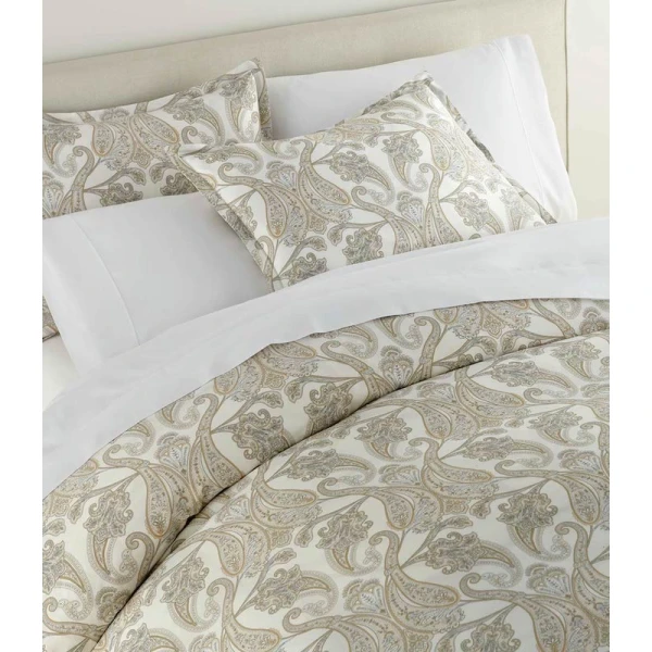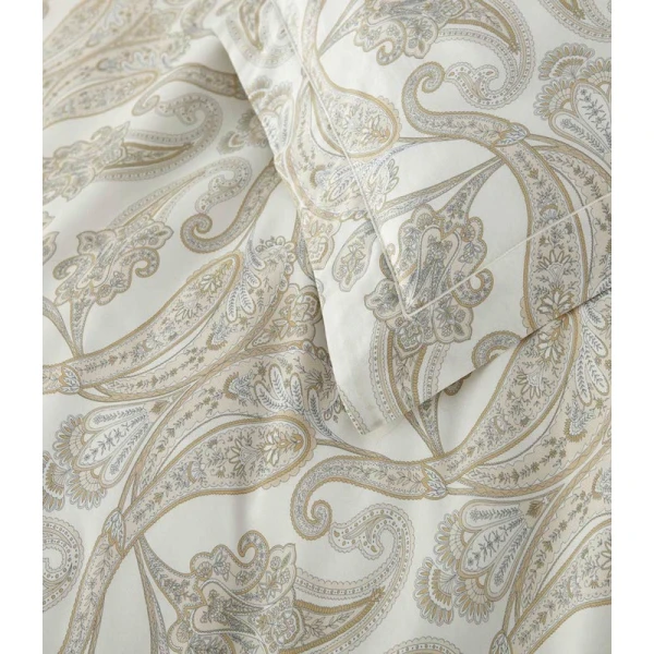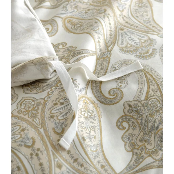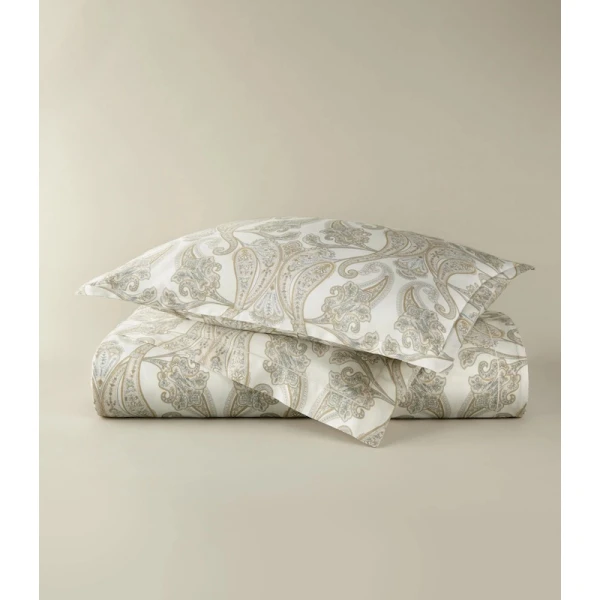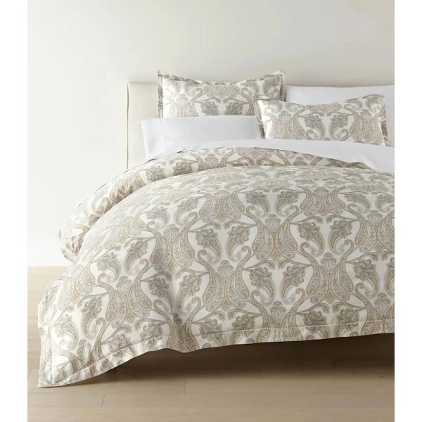Peacock Alley's Paisley printed duvet cover and sham set has a cascading printed pattern in tones of linen, ivory, pearl and taupe is forever chic and complements a variety of bedding looks. Expertly crafted it glistens and drapes elegantly. 100% Cotton