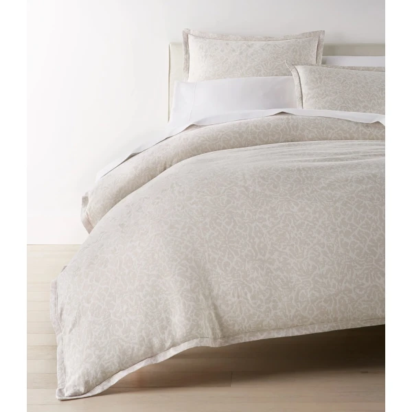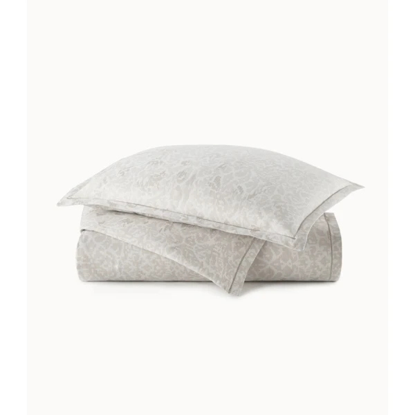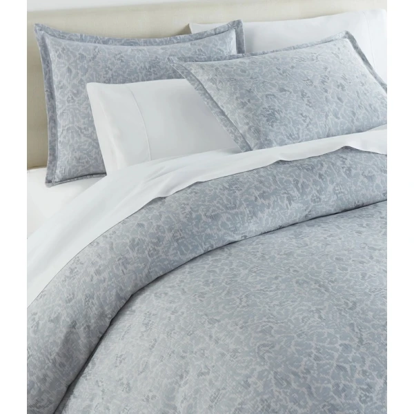 Peacock Alley's Ravenna is gender neutral and can be mixed with an array of styles. It is a masterfully woven jacquard with a modernized, deconstructed Damask design. Available in multiple soothing tones that translate well with taupe and gray for a transitional look. The duvets and shams feature a 1†flange with a coordinating satin stitch. The duvet cover is finished with a knife edge on the top side and a zipper closure at the bottom 1" from the hem on the back side. The shams are finished with an envelope closure centered on the back. 100% Long staple cotton. Handcrafted in the north of Italy.