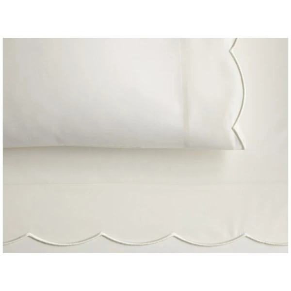 A 300 thread count sateen, Overture has a taped scallop on the pillowcases and flat sheet. 100% Egyptian cotton made in Portugal. Available in white or ivory. One of our most popular sheets from Peacock Alley -- makes a lovely bed!
