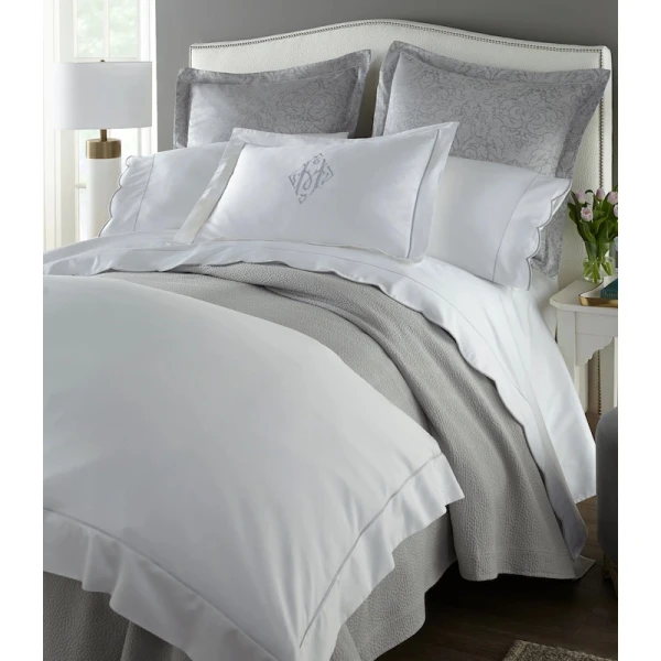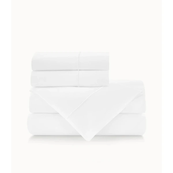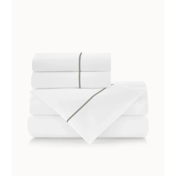 Boutique, Peacock Alley's hotel sheet, is a 100% Combed Long Staple Cotton Percale - 200 thread count.  One row of satin stitch on flat sheets & pillowcases.    Now available in 4 colors.