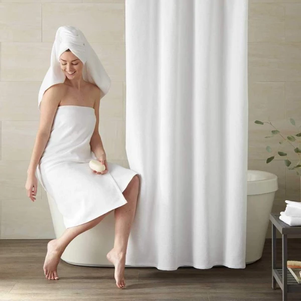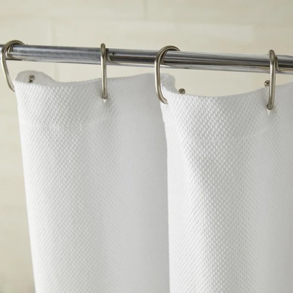 Peacock Alley's Spa Shower Curtain is a modern update on a classic.  The simple, sophisticated design of the Spa Shower Curtain works beautifully with any color scheme or design aesthetic. Available in a shower curtain and a bathrobe. Constructed with a textural flat weave and 12 button holes along the top for hanging. Shower curtain hooks/rings not included. 100% Cotton/430 gram weight. Made in Portugal.