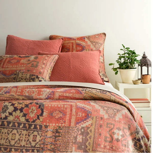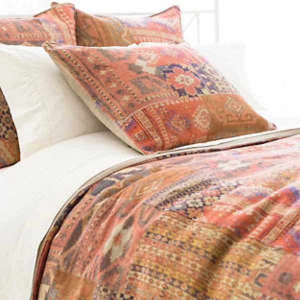 Add a pop of southwestern flair to any bed with this kilim-inspired linen bedding from Pine Cone Hill. Featuring a colorful patchwork print in shades of java, brick, blue, and terra-cotta, this bedding mixes effortlessly with PCH's Laundered Cotton throws, Linen Mesh coordinates, and Anatolia decorative pillows and throw.