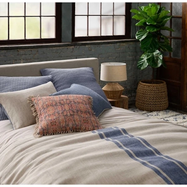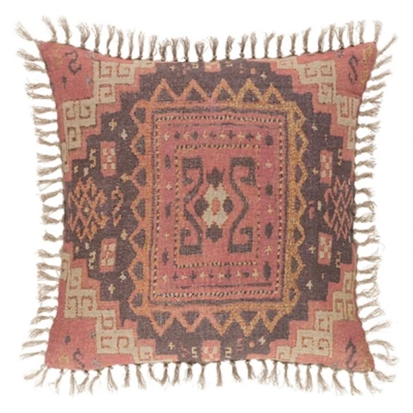 Pine Cone Hill's Anatolia Linen Kilim Print Pillows are delightful with their Turkish carpet-inspired laundered linen print. Create your own Arabian Night's dream upon this uniquely knotted and fringed decorative pillow.  Reversible. 2" knotted fringe on all 4 sides. Zipper closure.  100% linen.