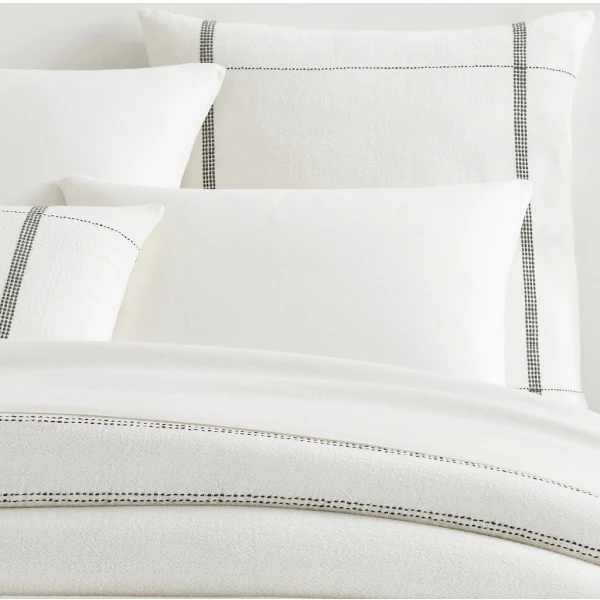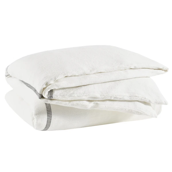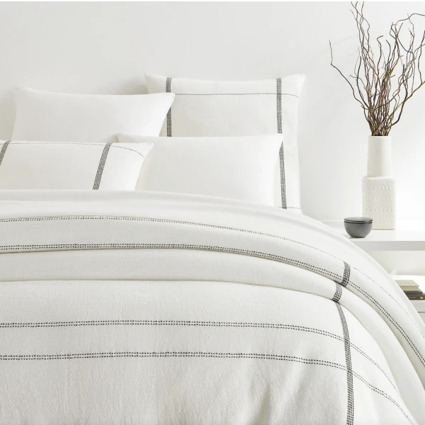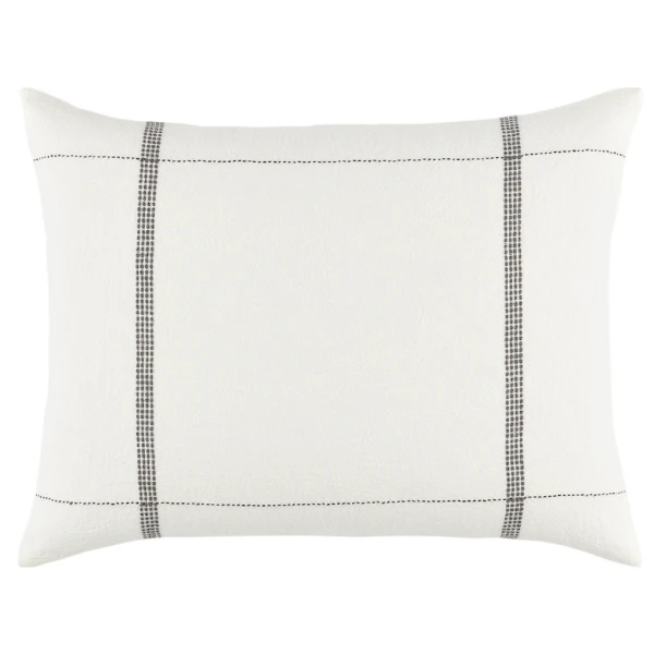 Pine Cone Hill's Atherton Grey was inspired by antique, homespun grain sacks, the Atherton Duvet Cover boasts a large windowpane check that will add a modern farmhouse aesthetic to any decor. Subtly engineered to resemble hand stitching, the heirloom flaxen quality softens with every wash, with very little wrinkling, and is made to last a lifetime. Duvet has hidden button closure. Inside corner ties to help keep duvet insert secure. Shams have closure ties.