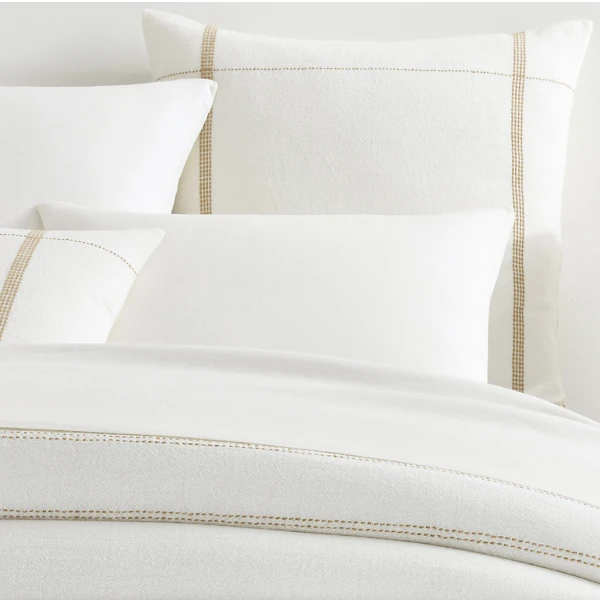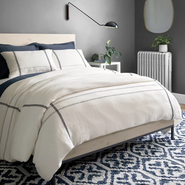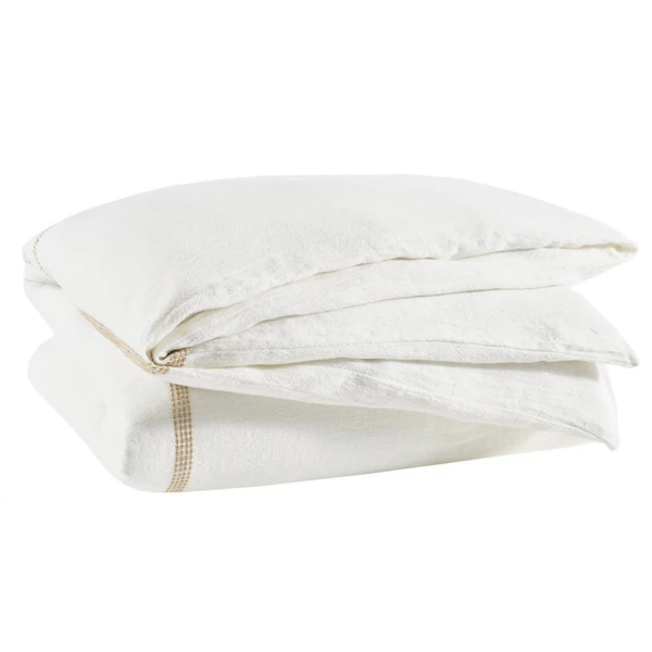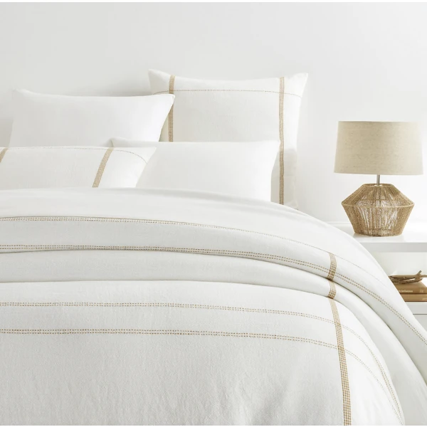 Pine Cone Hill's Atherton Natural was inspired by antique, homespun grain sacks, the Atherton Duvet Cover boasts a large windowpane check that will add a modern farmhouse aesthetic to any decor. Subtly engineered to resemble hand stitching, the heirloom flaxen quality softens with every wash, with very little wrinkling, and is made to last a lifetime. Duvet has hidden button closure. Inside corner ties to help keep duvet insert secure. Shams have closure ties.