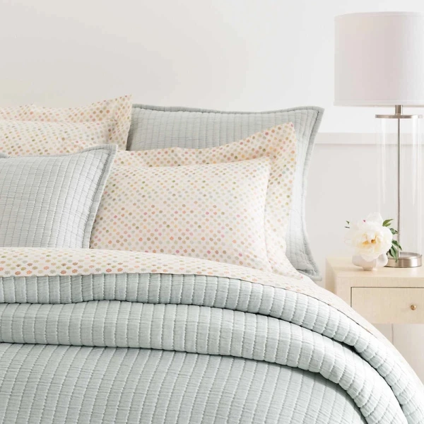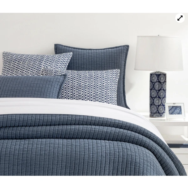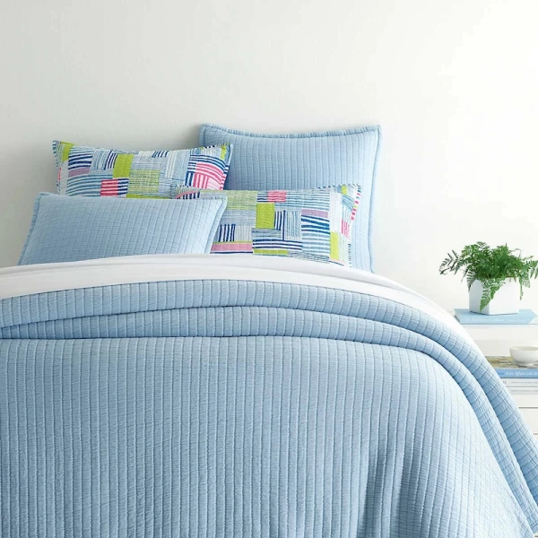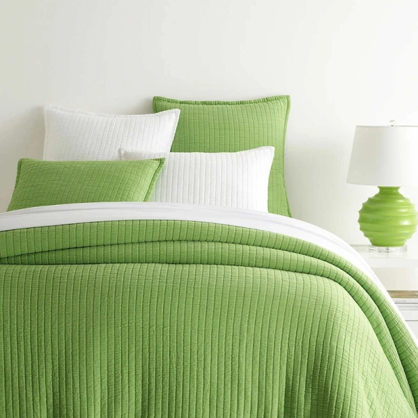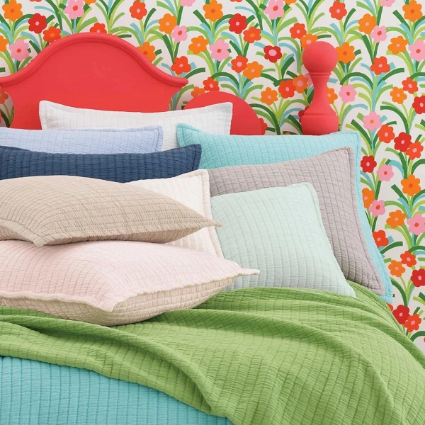 We can't think of a bedroom -- his, hers, for kids, or a dorm -- that wouldn't get an instant style upgrade from this easy cotton matelasse sham. In a unique grid-like weave and an array of rich hues, it has a fresh, contemporary look and soft-to-the-touch feel. Several wonderful colors available.  Stone washed. Knife edge with 1" hem on 3 sides, 1/2" top hem.  Knife edge finish.  100% Cotton.  Made in Portugal.
