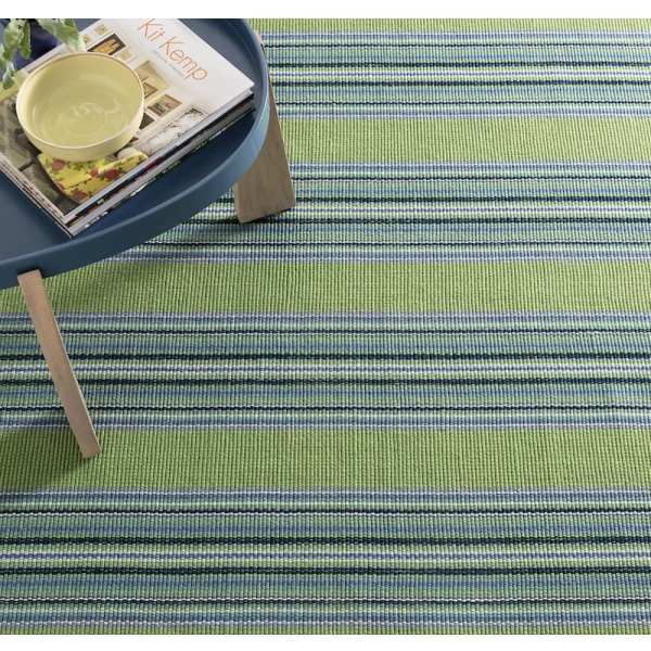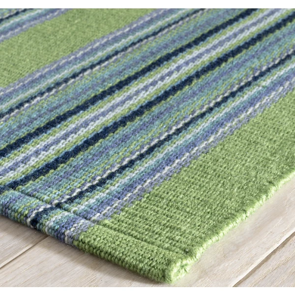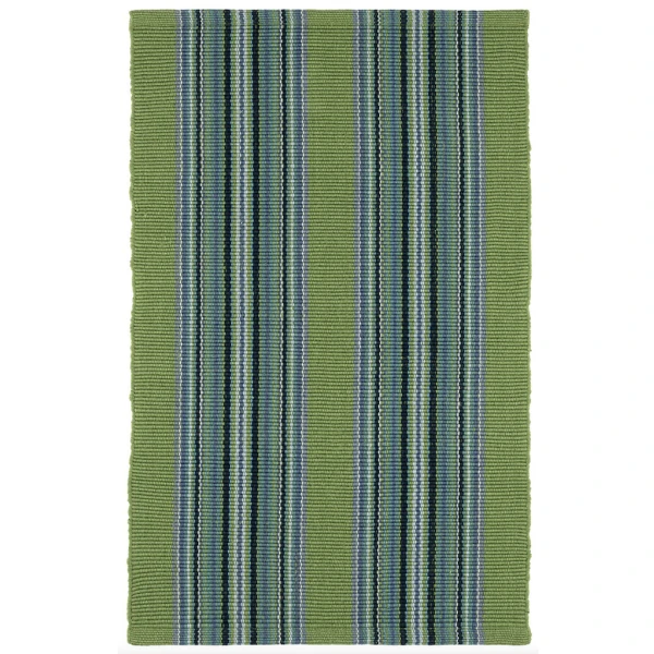 Dash & Albert's Road Runner Green Handwoven Indoor/Outdoor Rug is woven in resilient and washable recycled P.E.T. performance threads and featuring a multitude of tonal colors crammed into exuberant mini striped vertical blocks, this durable and fade-resistant rug feels as soft as cotton but will stand up to whatever everyday life brings its way. Born to run, these energetic rugs will outpace any other stripe on your floors or stairs.