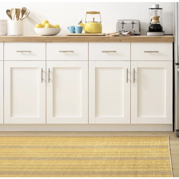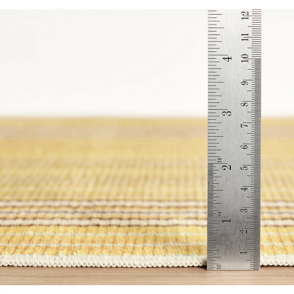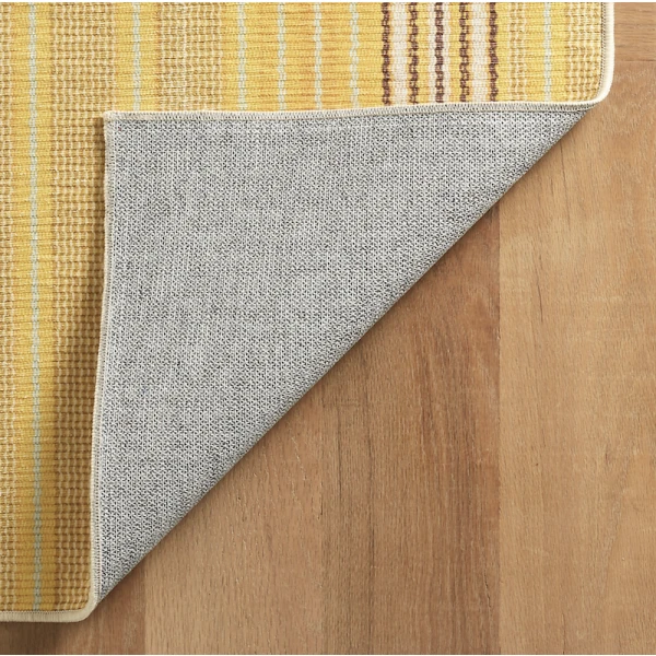 Dash & Albert's Sunflower Ticking Yellow Machine Washable Rug was inspired by the colors of the Mediterranean. It features a mix of sunny yellow stripes equally at home in modern, farmhouse, coastal, or traditional rooms, wherever you need a stylish, easy-to-clean, durable rug option. Its superior quality means it lies flat and remains soft underfoot with no shedding or fuzzing, even after multiple washes.
