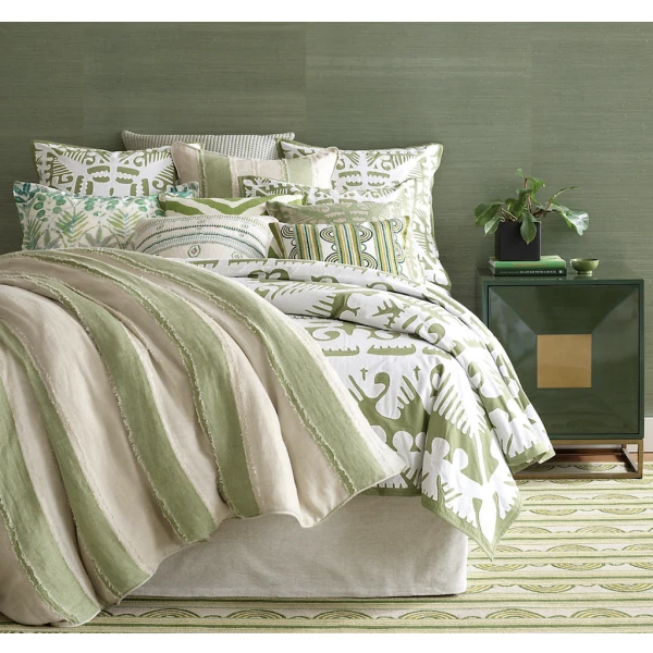 Pine Cone Hill's Moon Hills is part of the Kit Kemp collaboration. The eyelash fringe adds visual and textural interest to this duvet cover expertly woven with the finest linen. Pair with coordinating shams and curtain panels to create a relaxed yet effortlessly elegant bedroom. Twin/Twin XL duvet covers have a longer fit to accommodate both standard twin and twin XL dorm mattresses. Woven pattern front with solid linen back. Hidden button closure. Inside corner ties to help keep duvet insert secure.