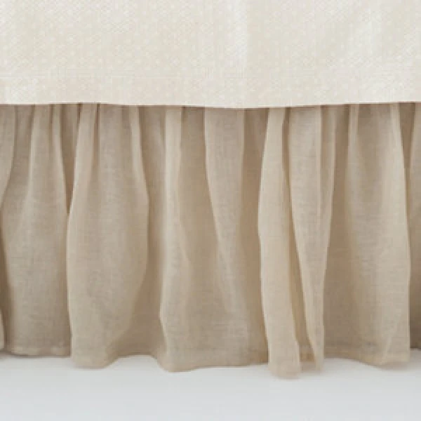 Beautifully draped Southern inspired bed skirt. 3 sided skirt.