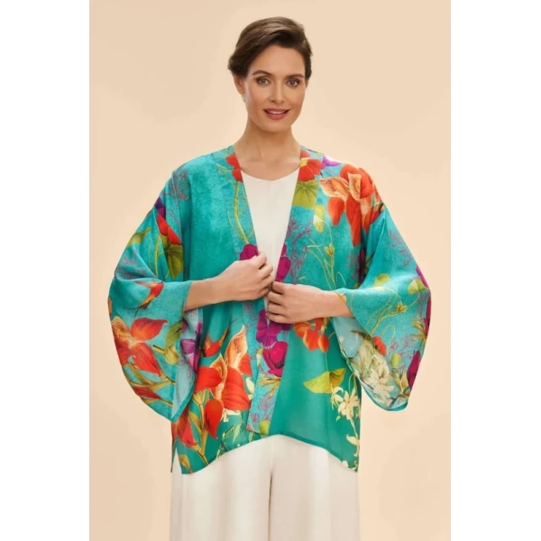 Hummingbird at Dusk Kimono Jacket in Aqua