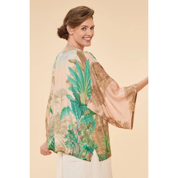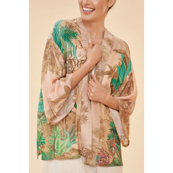 With a luxurious crepe-de-chine look, designed to wrap around your sleepwear - or to elevate your dinner party look - you will never want to take this Powder Oasis Kimono Jacket in Coconut off! It also makes a fabulous gift for those who love vibrant floral style.
