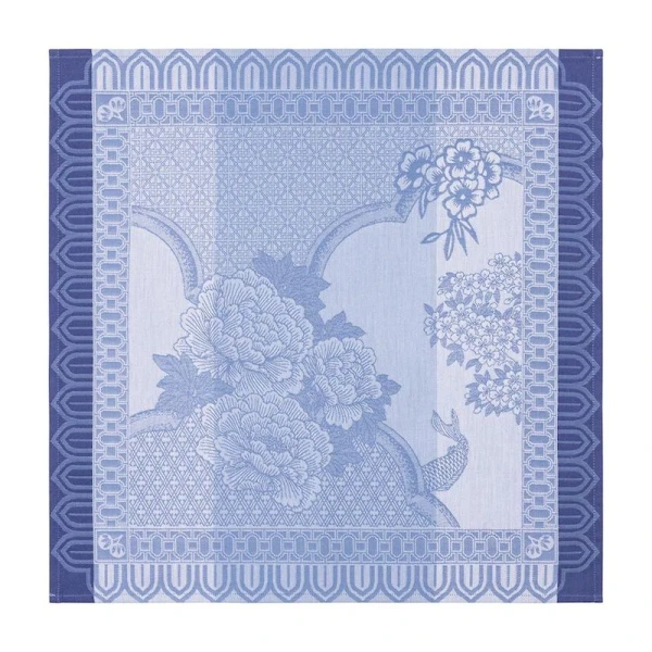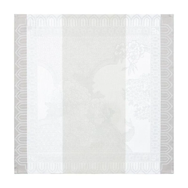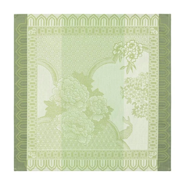 Le Jacquard Français Promenade Imperiale Table Linens will help you lose yourself in this imaginary garden, a contemporary tribute to delicate Chinese porcelains, where daydreaming accompanies every step. Peonies, carnations, and cherry blossoms bloom along arabesques inspired by baroque gardens, while carp glide peacefully through the ponds. Blending reimagined Asian geometry with the poetry of a sculptural décor, this collection exudes a breath of softness and delicacy. Crafted with combed yarns featuring long fibers for superior durability and a luxurious feel. The intricate Jacquard weaving technique uses color in both warp and weft to create depth and dimension that won't fade. Finished with simple hems for a refined, understated elegance that complements any table setting. Made in France.