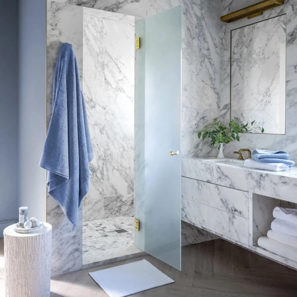 Offered in White, Ivory, Linen, Hydrangea, Marine, Alpine, and Rosewater.