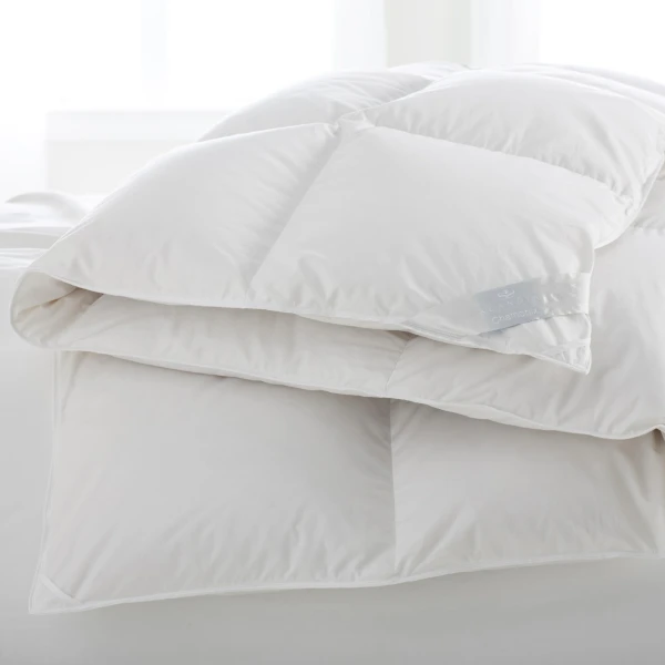 Scandia Down's Chamonix comforter mixes lighter than air comfort and optimal thermal performance and delivers pure luxury for down bedding. It is inspired by its historic namesake in the valley beneath Mont Blanc. The down is an 800-850 fill power. Siberian white goose down clusters provide ideal loft for warmth and volume. The cover is an Austrian nano-sateen shell that ensures a soft, silky touch and the weight of a whisper. It has sateen piping around edges and is double-stitched for durability and longevity. Baffle box stitching keeps down from shifting and eliminates cold spots. Professional laundering is recommended. American made of imported materials. RDS (Responsible Down Standard) Certified and certified hypoallergenic.