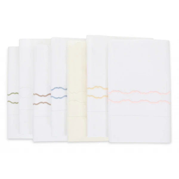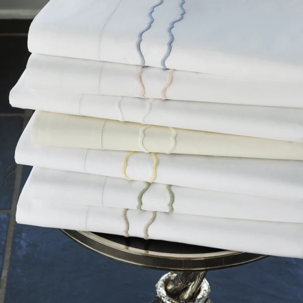 Genna is our take on the classic Palm Beach look, crafted on our best-selling Celeste percale, and lushly stitched with two decorative lines of embroidery. And with such a sassy array of color options, bringing a bit of this jet-set decorating style into the bedroom is a snap. Add your monogram in a matching color for a beautiful classic bedding look. Perfect for the Master Bedroom.