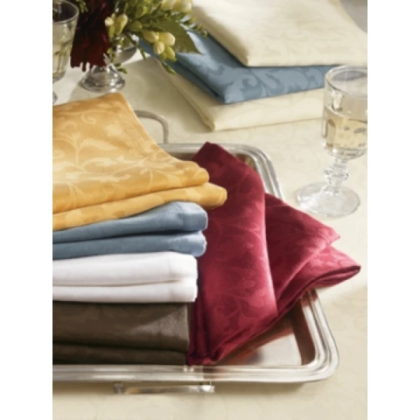 A beautiful tablecloth that is easy to launder thanks to its ringspun polyester content.  Having the hand of cotton, and in a woven jacquard pattern of scalloped buds and leaves, leave it to Sferra - the master of fine tablecloths, to come up with a tablecloth that combines the formality and fell of fine table linen with a special stain repellant finish for easy care.