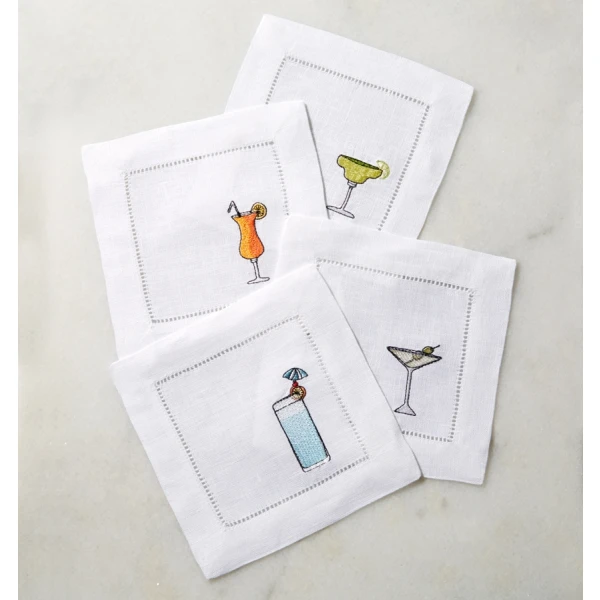 Embroidered on Festival cocktail napkins. Comes in organdy bag. Or choose a Sferra gift box.
