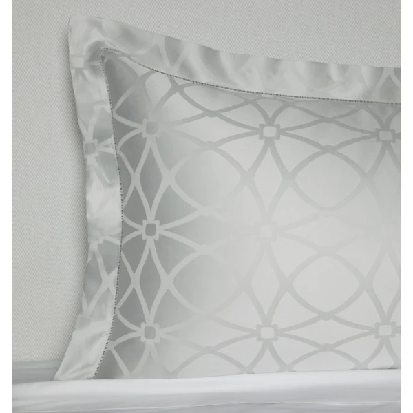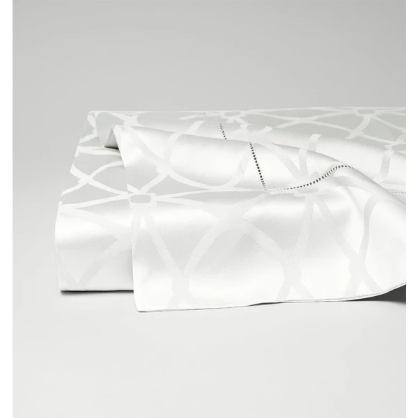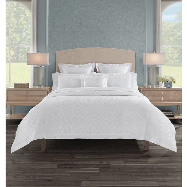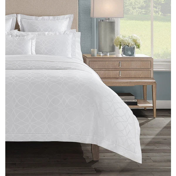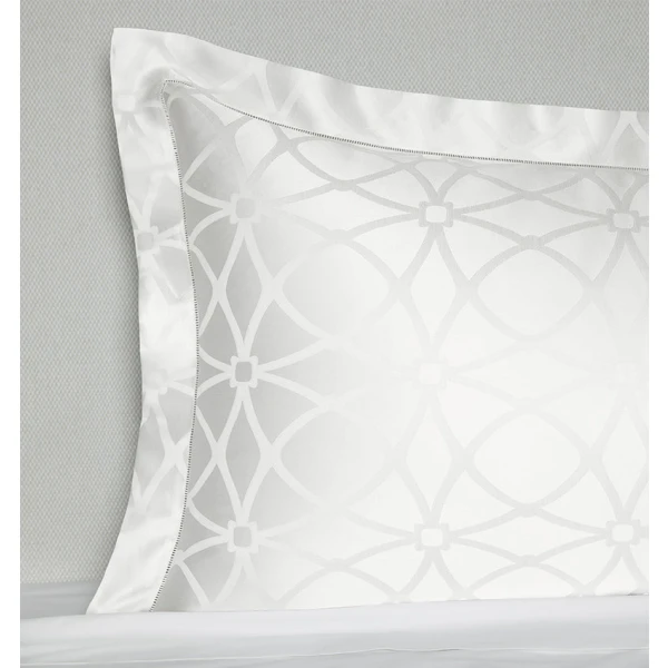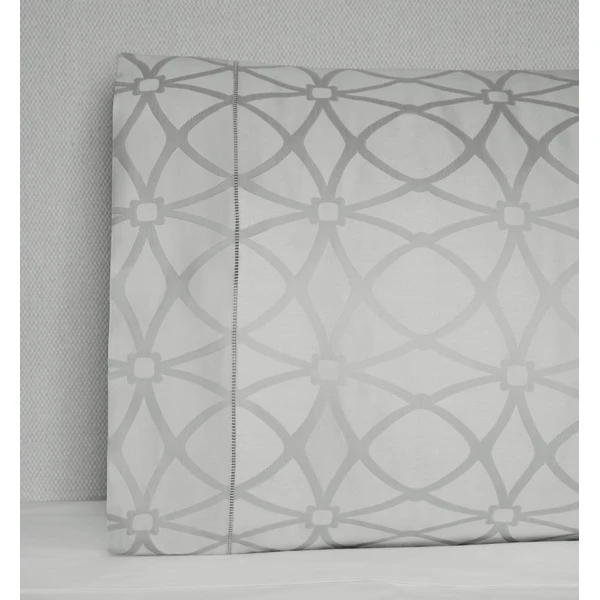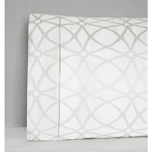 Sferra's Giza 45 Porta is so sophisticated.  It is woven with the rarest Egyptian cotton to create the softest, smoothest, and most luxurious bed linens available. Inspired by classic ironwork, Sferra Giza 45 Porta is rendered with an all-over scrolling motif, channeling understated sophistication and grandeur.  Duvet Cover / 2 1/2 inches.  Shams / 2 inches.  Boudoir / 1 1/2 inches.  Flat Sheet and Pillowcase cuffs / 4 inches.  Piece dyed Jacquard.  Hemstitch finish.  100% Giza 45 Egyptian cotton.  Origin: Italy.