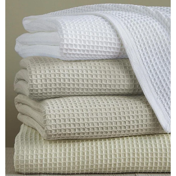 The classic waffle weave of our cotton thermal blanket is designed to shelter warnth, while its pure cotton offers dulcet softness and inviting comfort. Pre-shrunk so that it stays generously sized to accomodate deep mattresses. Made in Portugal and available in seven pastel and neutral colors.
