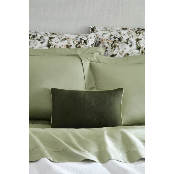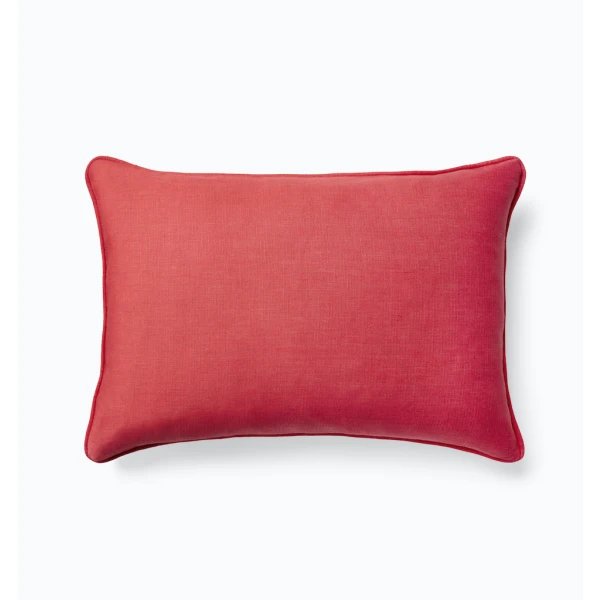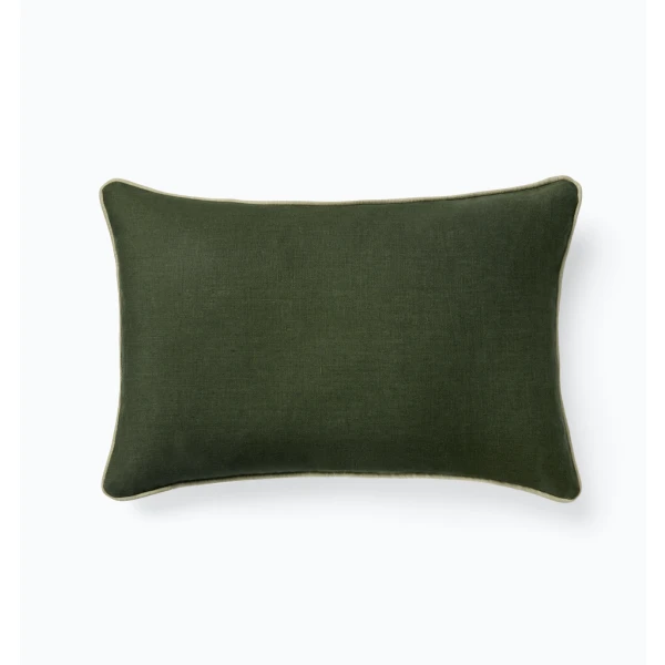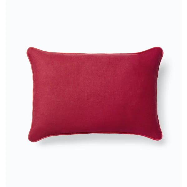 Sferra's Manarola decorative pillow is colorful and fun. Adding a delightful look of spring to your space, Manarola decorative throw pillow displays two stunning colors—one on each side—using our popular Festival linen. Contrast border piping adds a subtle design element.  Plain weave.  Contrast piped edge.  Hidden zipper.  Insert is 95% feather and 5% down.