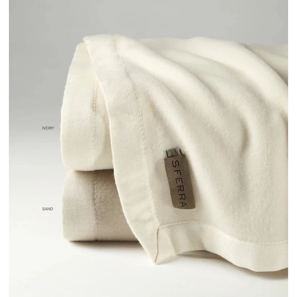 We scoured the globe to find the perfect light-to medium-weight wool blanket that met with our fastidious approval.  At the end of our globetrotting, we found ourselves right back where we started, with the craftsmen we know and trust. Yes, Olindo is woven by one of our favorite mill masters in Italy, crafted from the rarest and most extraordinary Merino lambswool in all of Australia.  This ultra-fine wool is known for its supreme comfort and warmth. We have it spun and woven into a plush ground with an exceptionally lofty weave-this unique construction creates countless tiny air pockets within the fabric, and these little thermal bubbles form the secret to Olindo's soft, spectacular warmth.  Each generously sized luxury blanket is finished with fabric-bound hems for durability and comes in three decorator colors.  And best of all, it comes in a linen fabric bag; use it when storing in your linen closet.