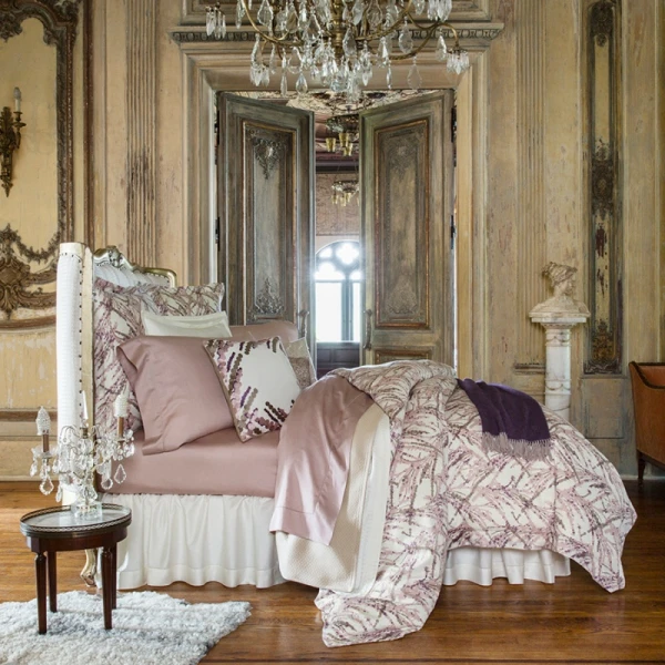 The character of print design takes on a new sensibility when imprinted on a sateen, because the fabric's inherent, refined luster brings the pattern to life.  Pallina is our case in point-- dots and splashes in exuberant sprays of color play across its smooth, soft surface for one-of-a-kind luxury style.