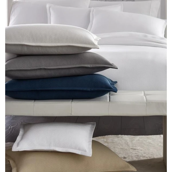 Sferra's Perrio matelassé embodies understated sophistication through its refined brick-pattern weave. Designed as a versatile layering essential, this piece delivers subtle textural depth while maintaining visual restraint. The palette draws from nature's most enduring hues—rich earth tones and muted sky shades characteristic of the season's transition. Crafted in Portugal, it represents the brand's commitment to timeless design that complements rather than competes within any interior scheme.